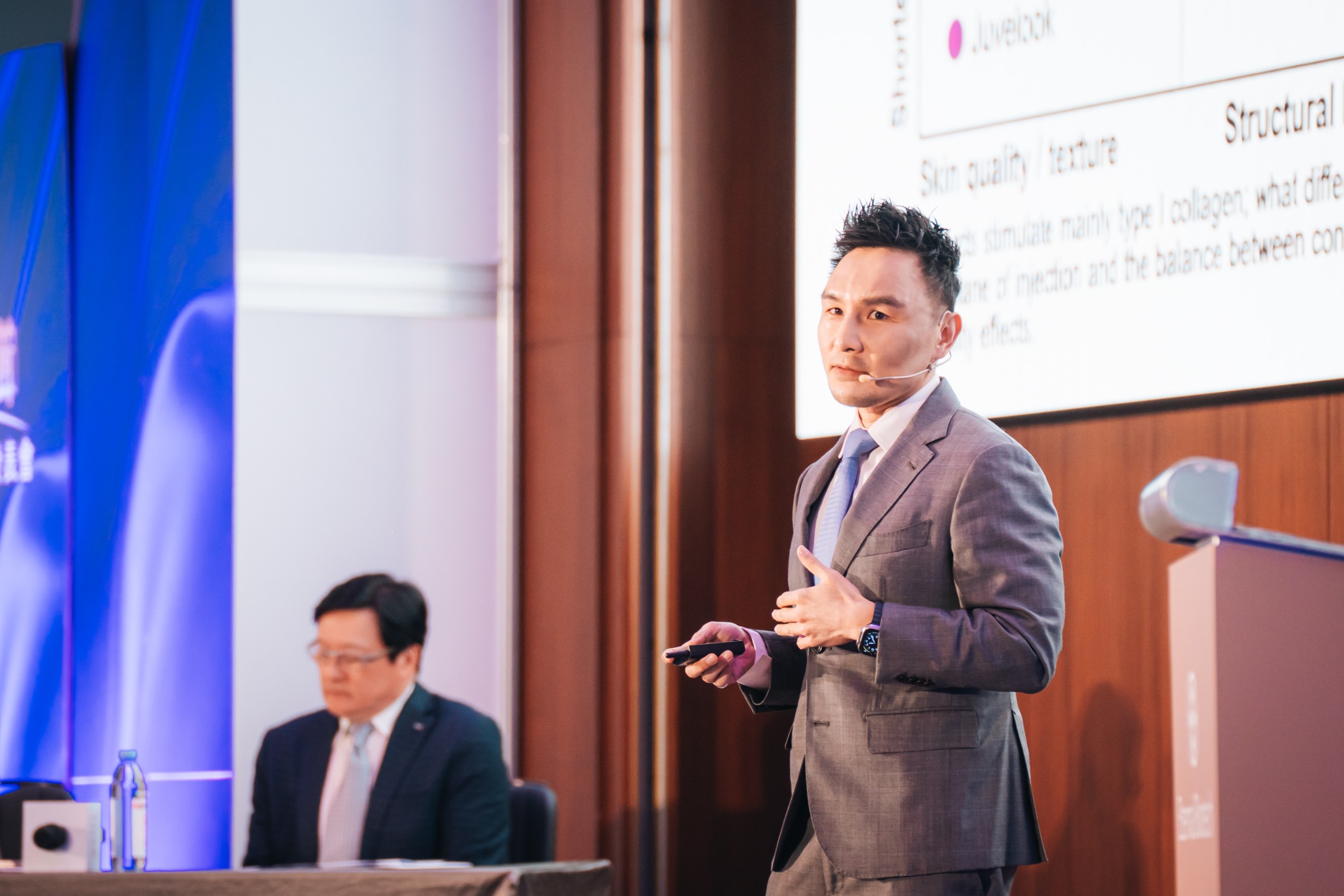 此外,來自韓國的Dr. Choi Han Gyu亦帶來韓國臨床經驗,透過CODE-X肌活筆微針科技,提升經皮膚導入效率,結合新生劑材料打造專屬養膚規劃。陳建名醫師分享結合球形孔洞式的聚左旋乳酸與PN多核苷酸的PiNkLLA超導賦活粉光瓶,搭配肌活筆導入的個案研究成果與應用,為現場醫師帶來豐富的臨床啟發。