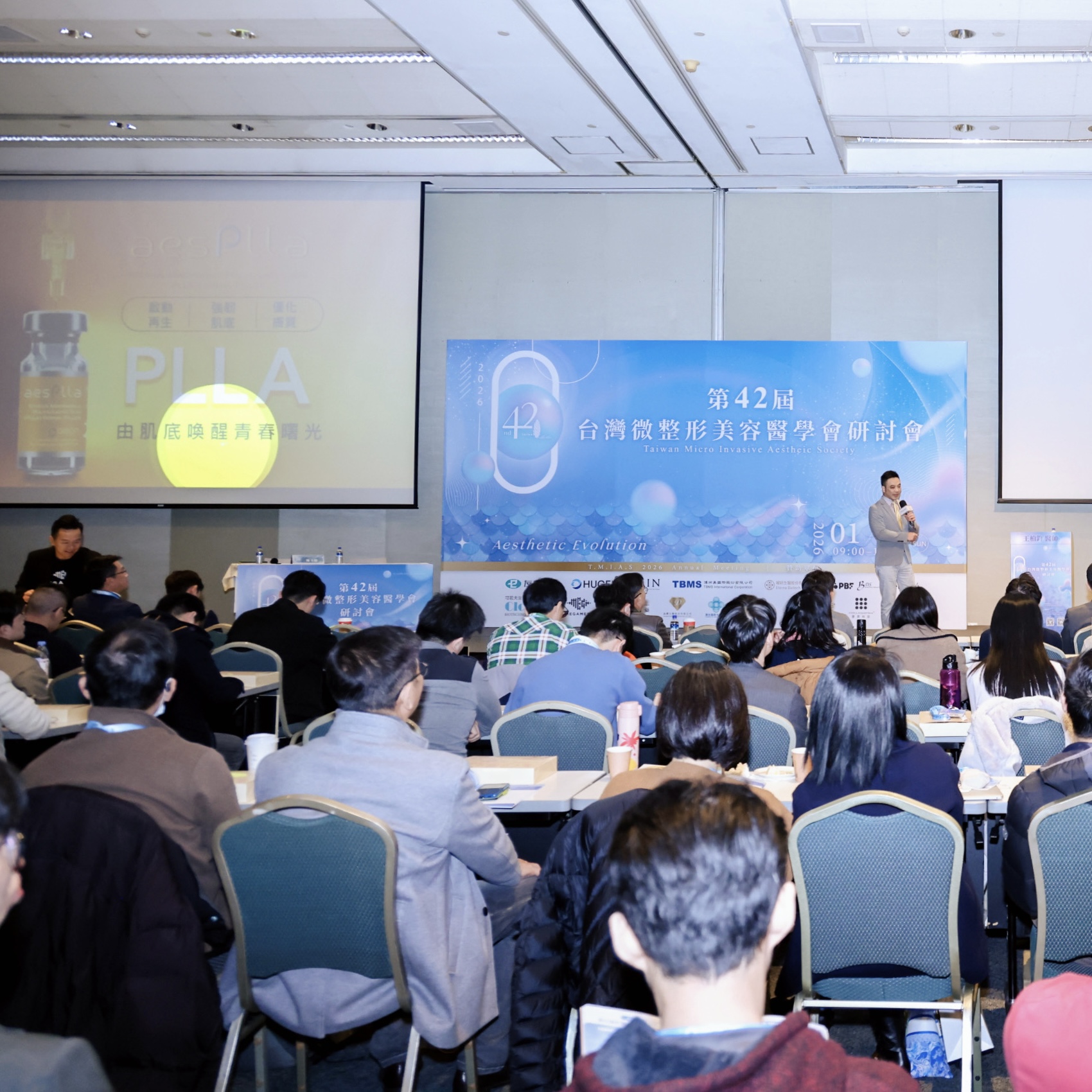 曜妍生醫榮幸與台灣微整形美容醫學會共同舉辦學術研討會,現場匯聚百位菁英醫師,深入探討aesPLLA®原生曙光瓶在醫美臨床中的核心價值與實務應用。透過專業交流,醫師們共同探索 膠原新生、肌膚結構重建 與前瞻性治療思維。