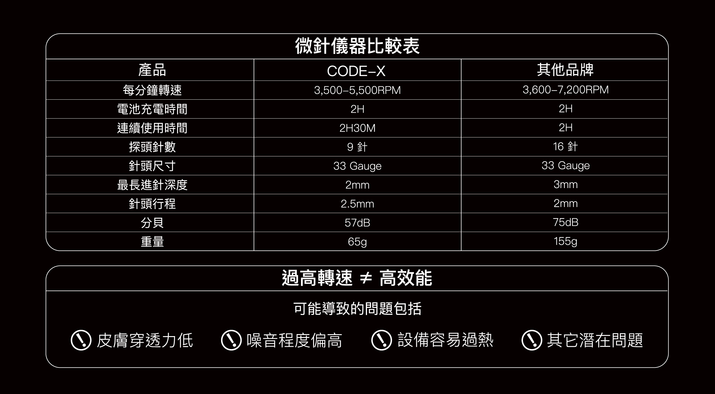 隨轉速上升,運轉噪音與機身溫度同步升高,影響操作舒適度及療程感受。